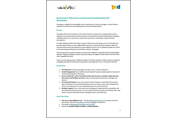 Improving sustainability can also bring financial benefits to your school. This guide explores practical ways to reduce costs related to energy, water, and waste, while unlocking additional resources such as free books and funding through Wastebuster campaigns.